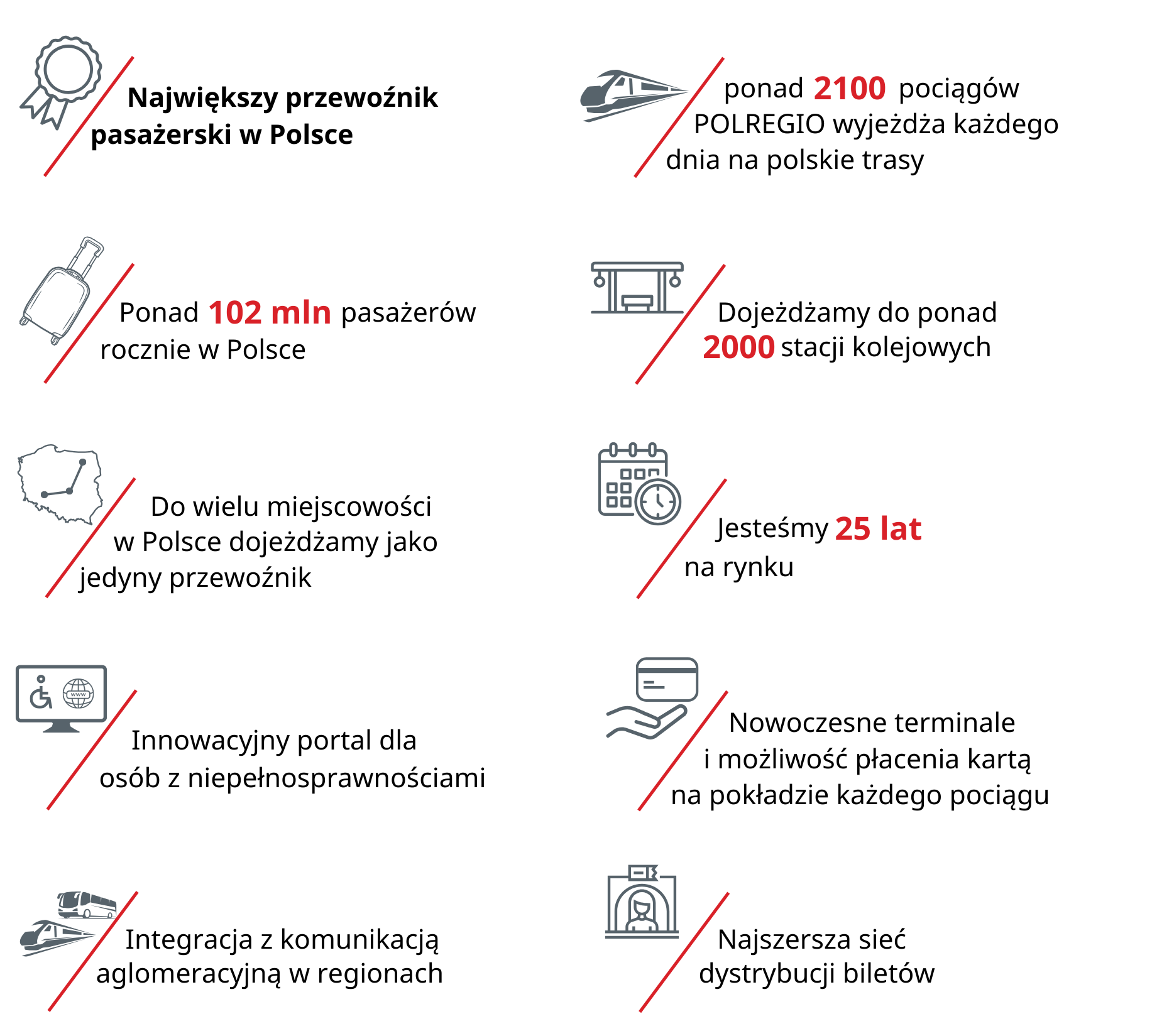Dotrzyj do milionów pasażerów w Polsce dzięki reklamie w największej sieci regionalnych przewozów kolejowych. Oferujemy skuteczne i widoczne nośniki reklamowe, które pozwolą Twojej marce zaistnieć w przestrzeni codziennych podróży.